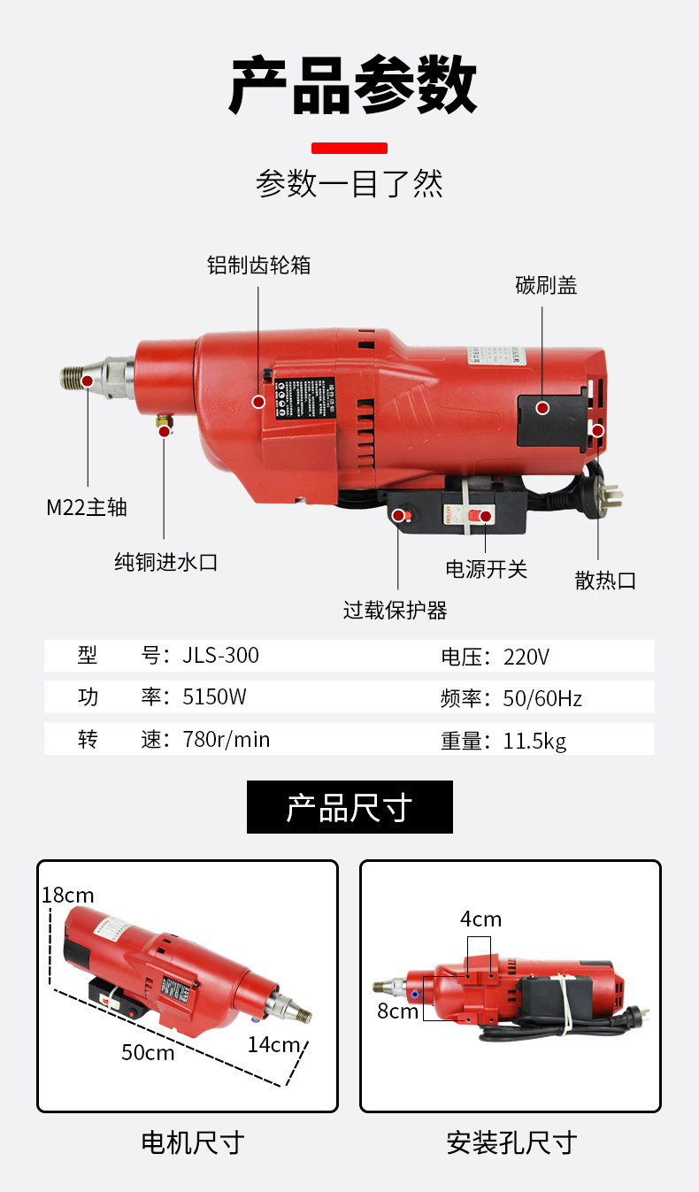 捷联JLS-300水钻机机头