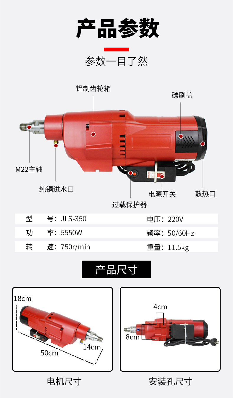 捷联JLS-350水钻机机头